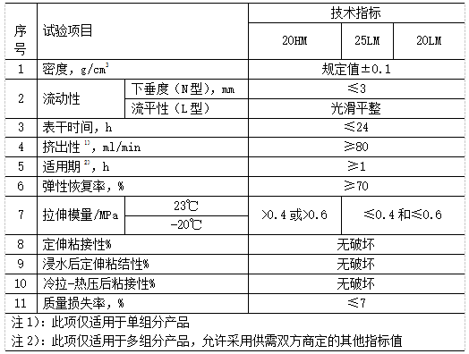 目前聚氨酯密封胶检测的标准为JC/T 482-2003,聚硫密封胶检测的标准为JC/T 483-2006,具体技术指标要求分别参见表1和表2。