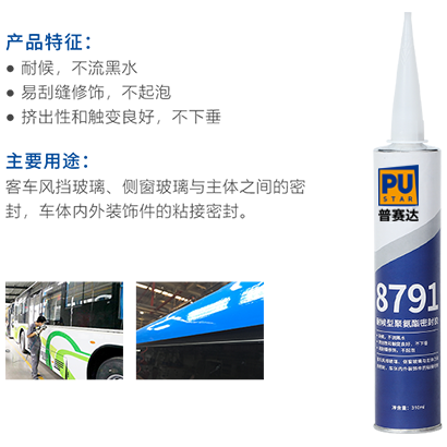 8791耐候型聚氨酯密封胶是一种单组分湿气固化聚氨酯胶,具有良好的密封性能和内聚力,对基材无腐蚀、无污染,对环境无污染,与金属、玻璃等多种基材粘接性较好。