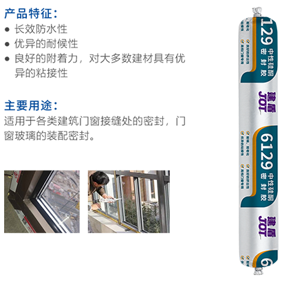 6129为单组分湿气固化密封胶,采用中性硅酮胶作为原料,对环境无污染,与金属、陶瓷、玻璃、石材等多种基材具有良好的密封粘接性能。