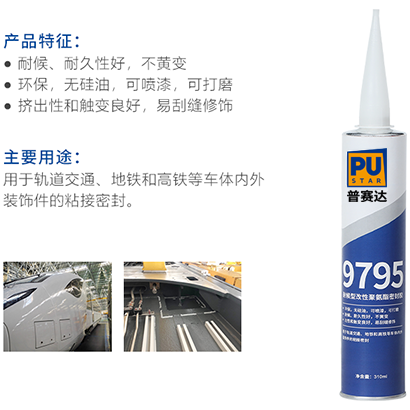 用于轨道交通、地铁和高铁等车体内外装饰件的粘接密封。