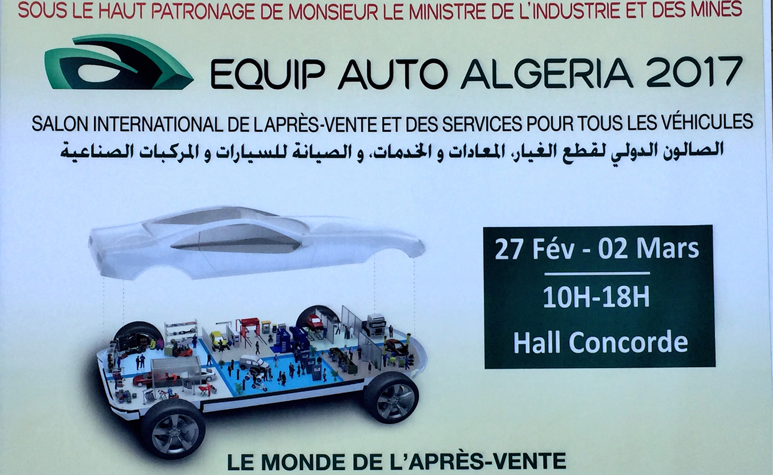 Exhibitiontime:February 27,2017 - March 2, 2017Exhibitionaddress:AlgiersNational Exhibition CenterExhibitionlink:www.equipauto-algeria.net/