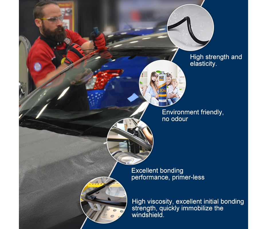 • High viscosity, excellent initial bonding strength, quickly immobilize the windshield.