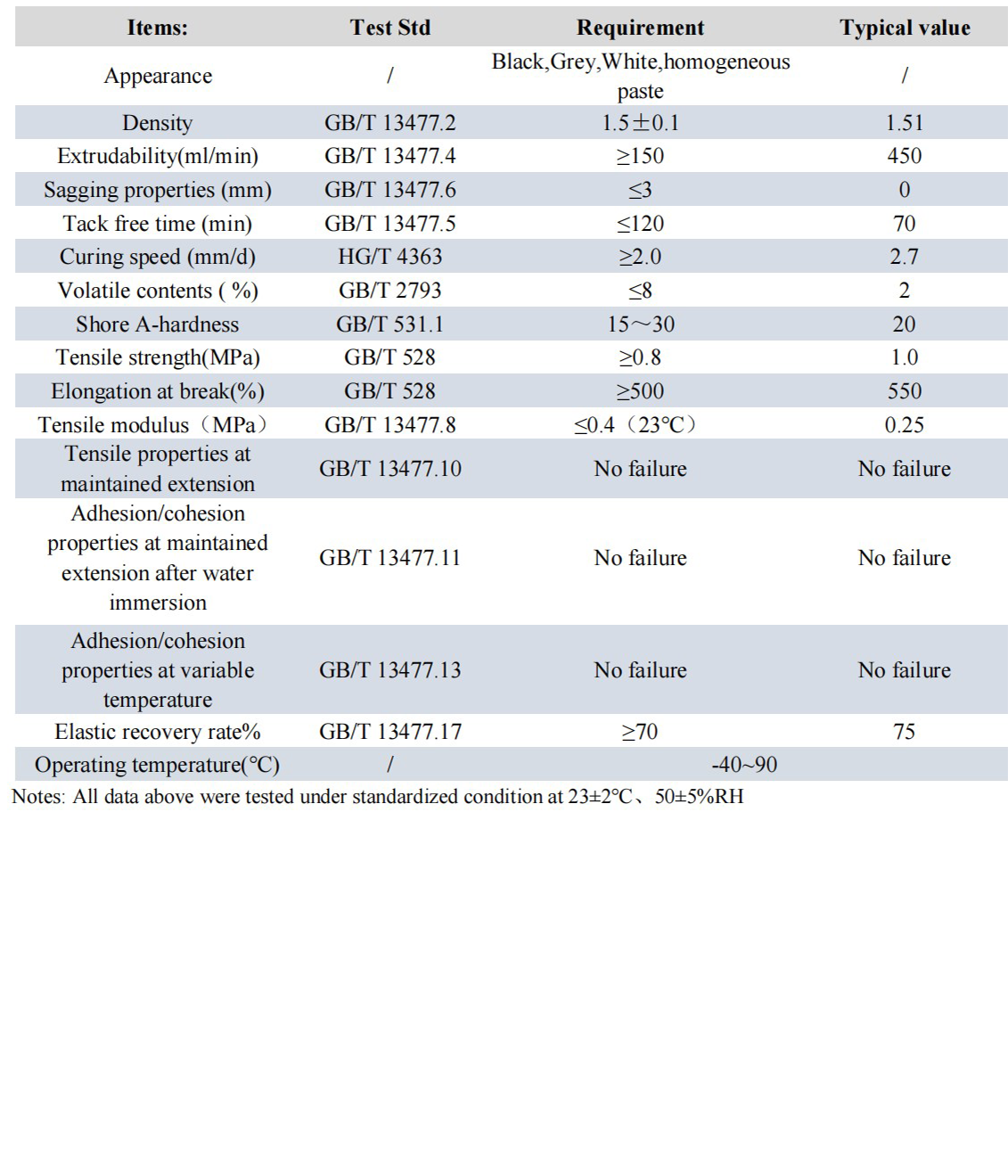 Suitable for sealing joint of underground tunnel, bridge tunnel, drains, sewages pipes, epoxy floor, concrete internal walls.